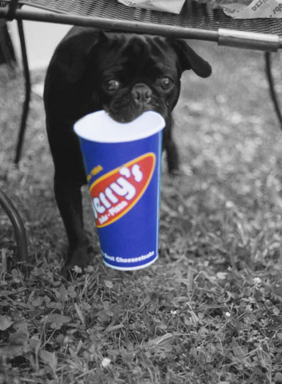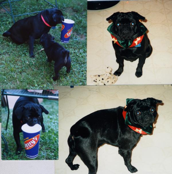 "Rollin Thunder" ![]() Being the daughter of one of the top architectural photographers in Washington, I have come across great opportunities to display my pugs. This particular picture of my handsome male stud pug Thunder is featured in almost every Jerry's pizza and sub shop you walk into. Thunder is pictured holding a Jerry's signature cup in his mouth, usually located just above the drink section in the restaurant. Now I know this is no hollywood spotlight, but it is close enough for Thunder, he thinks he owns the cameras! So if you are ever dining in a Jerry's, look for Thunder smiling at you when you get your drink. ![]() |